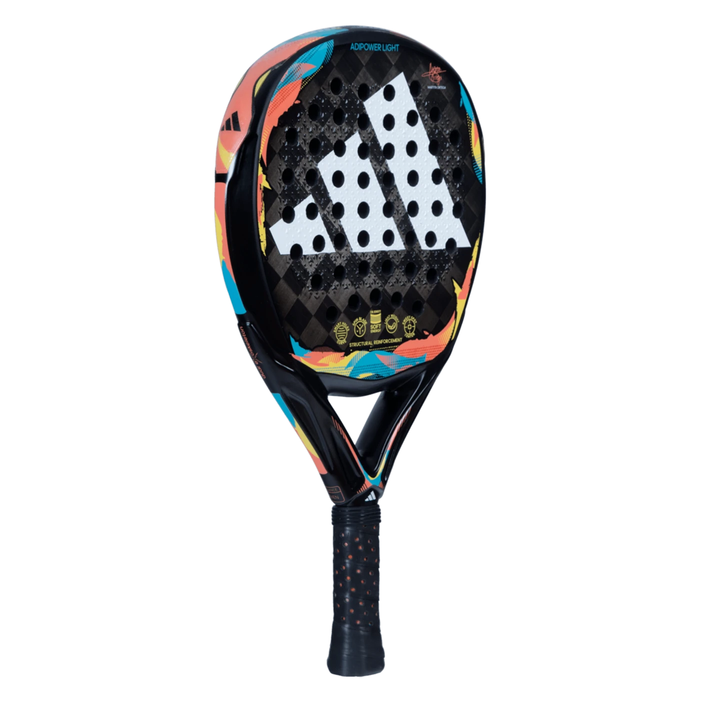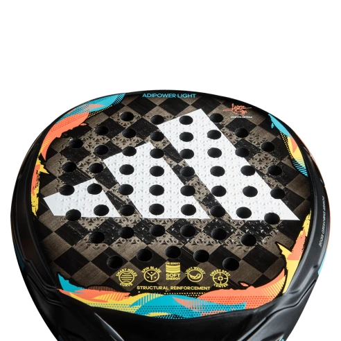 Adidas operates with 6 different types of fibres, each type having different properties that influence the power and control ratio of the racket. This racket is made with “Carbon Aluminized 24K”, which is Adidas’ second least flexible fiber out of 6. This provides a high degree of energy transfer in the stroke and thus you are rewarded with plenty of power when you hit the ball well.