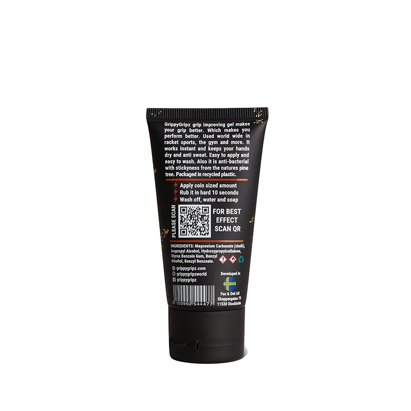 The product is a gel that keeps your sweaty hands dry and gives you an optimal grip on the racket. It is designed with a focus on counteracting the slippery surface that sweat can provide. The product works instantly when put into use. You dispense the gel into the palm of your hand and spread it gently.