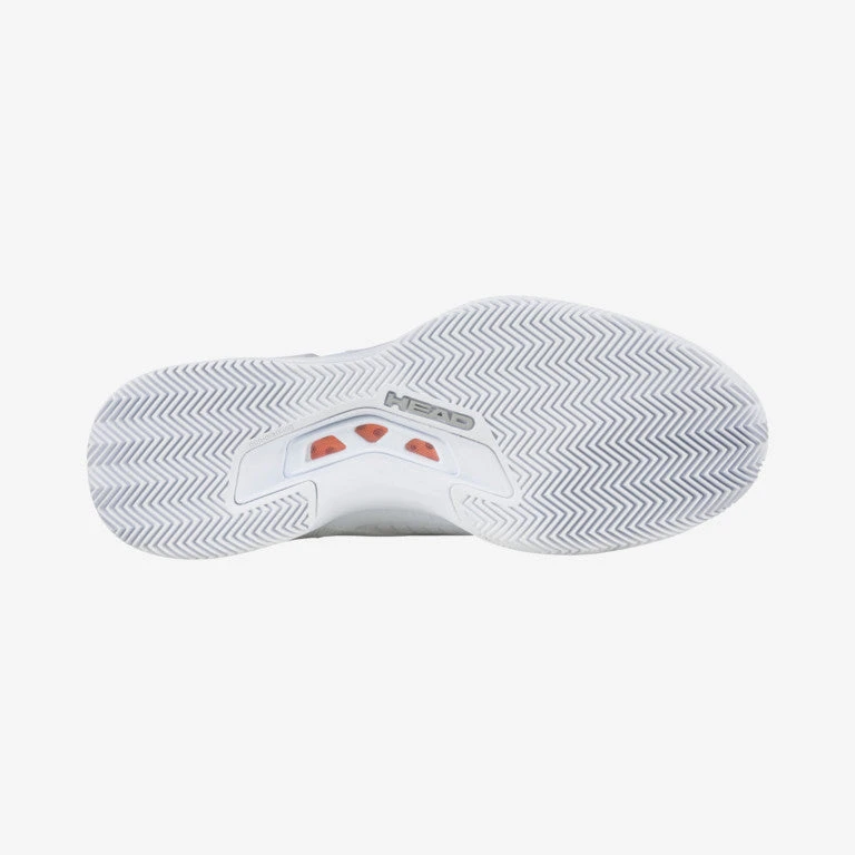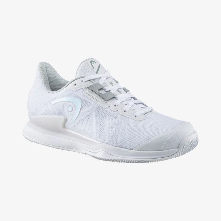 Head Sprint Pro 3.5 Clay Women Padel Shoes (White/Iridescent). Lightweight shoe with good ventilation in the upper part. The shoe has a clay court sole that is ideal for padel courts with sand lying at the top of the surface.