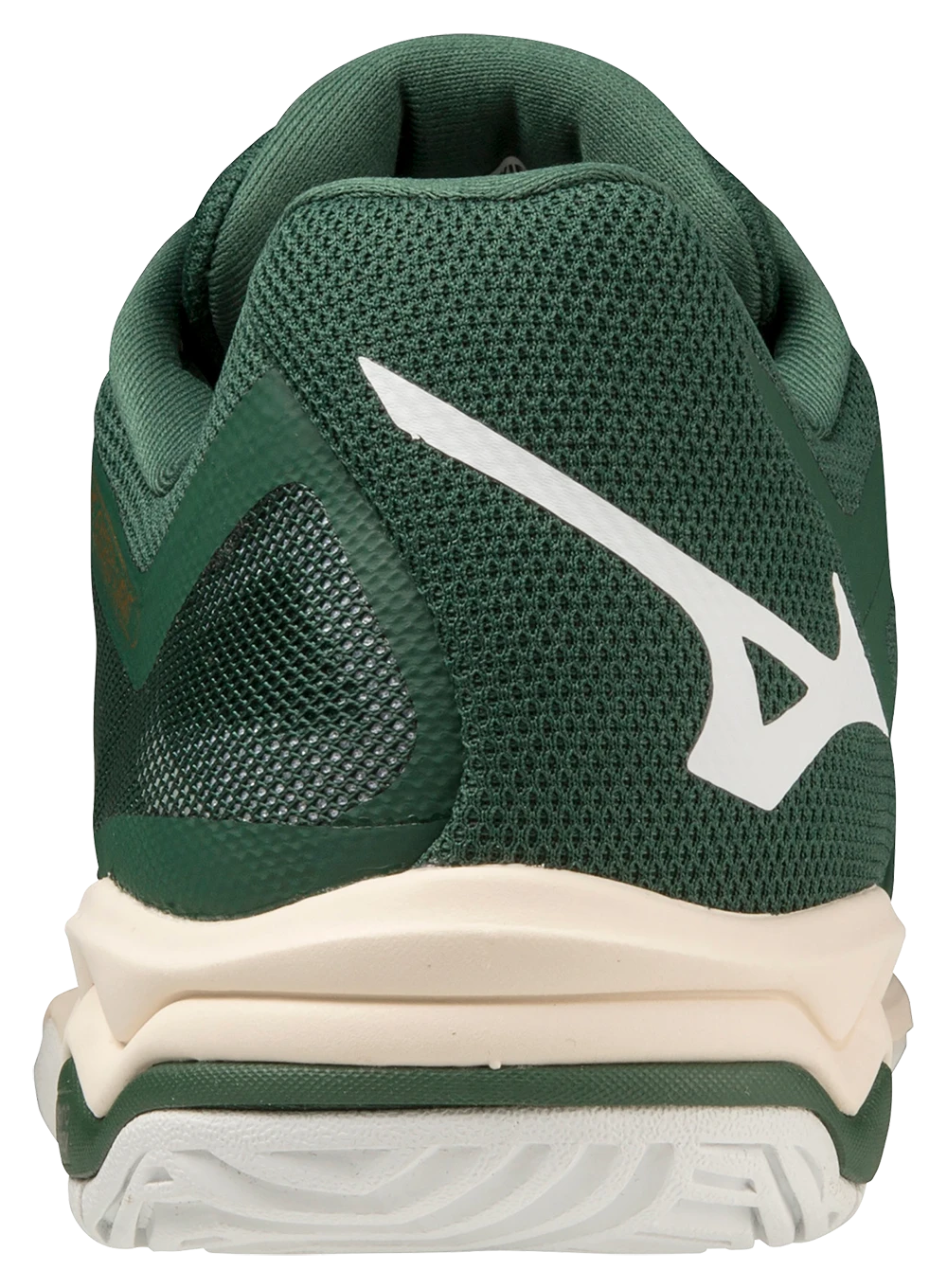 The Mizuno Wave Exceed Light AC Men Padel shoe (Pineneedle/White/Papyrus) is designed to give you the best possible suspension and energy transfer in your movements on the padel court. The aim has been to produce a lightweight padel shoe that you can wear for a long time without it starting to feel uncomfortable. This is supported by Mizuno’s X10 technology, which involves an extremely durable layer of carbon rubber in the high impact areas of the shoe.