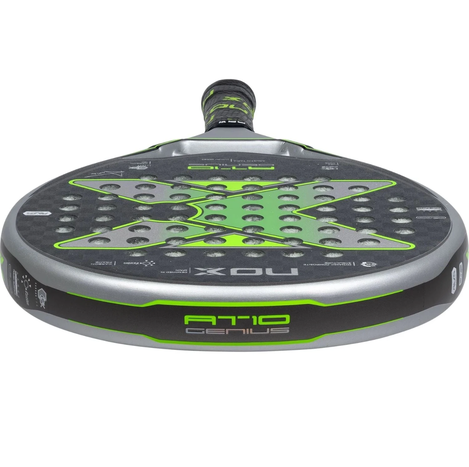The Nox AT10 Luxury Genius Arena 12K 2023 By Agustin Tapia is the latest edition of one of Nox’ most popular padel rackets. With a stylish design and great allround playing characteristics, it is targeted to a wide range of experienced and professional players.