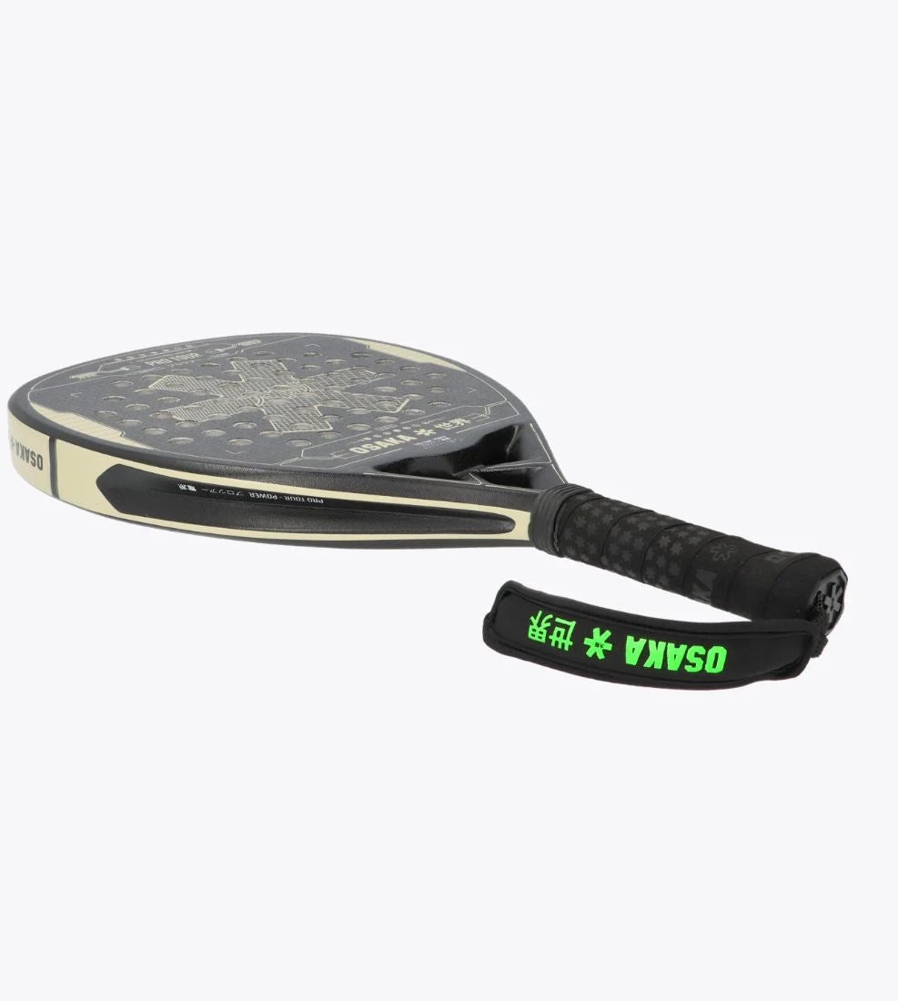 The Osaka Pro Tour Power 2022 is a teardrop-shaped racket aimed at a wide range of offensive padel players. The balance of the racket is on the head-heavy side, so you get more weight transfer and therefore hitting power in your overheads.