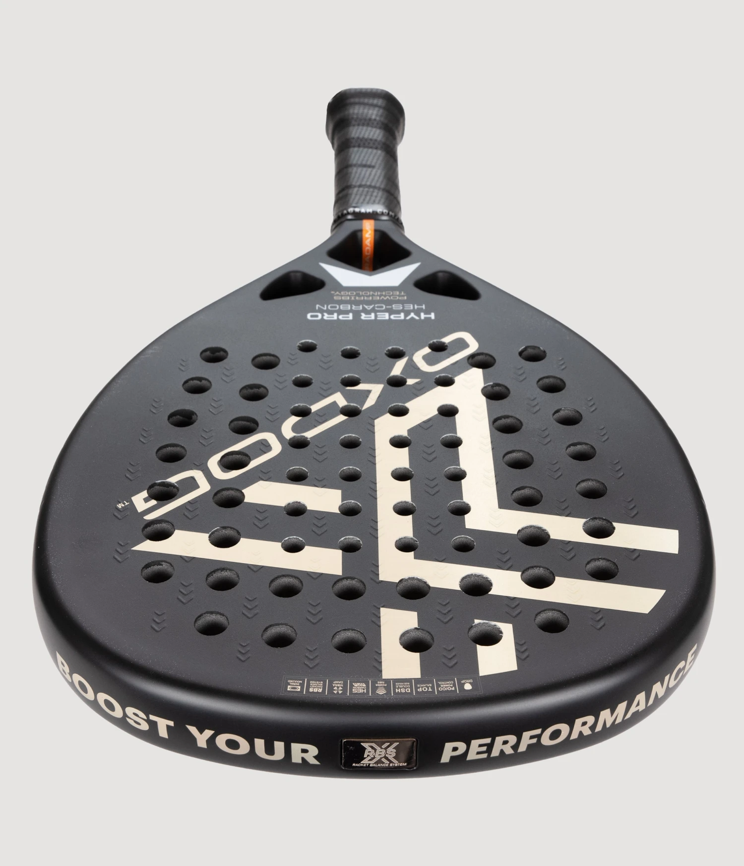 Hyper Pro is Oxdog’s top padel racket in their teardrop shaped range. The Hyper Pro is a super choice for intermediate players all the way up to the pros. Packed with Oxdog’s innovative technologies, you get a state of the art allround padel racket with above average power.