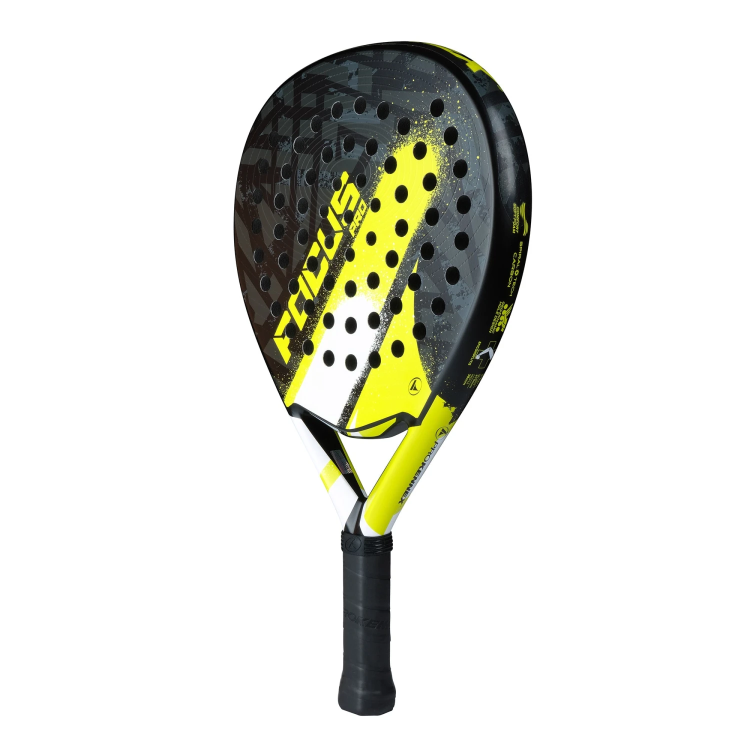 The racket is built in full carbon with a diamond shaped head, which means the sweetspot is located high in the racket for extra power. To further contribute to the power, the racket has a head-heavy balance which adds extra weight to the strokes.